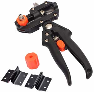 Прививочный секатор - устройство для быстрой и качественной прививки деревьев и других растений. Этот уникальный инструмент делает зеркальный срез на привое и подвое, привой идеально плотно соединяется с подвоем, что обеспечивает быстрое срастание. Два сменных лезвия в комплекте. Вес: 0,38 кг